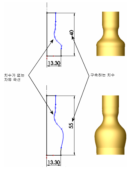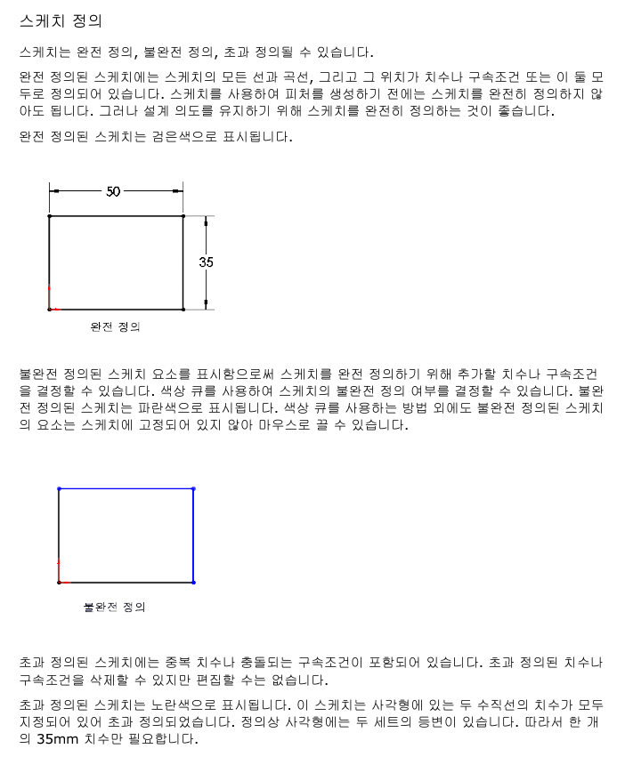 완전 정의된 스케치의 객체는 모두 치수가 정의 되어 있으며 설계의 의도가 명확한 것이다.