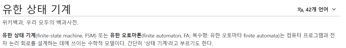 유한 상태 기계, 또는 유한 오토마토를 위키피디아에서 위와 같이 설명한다.