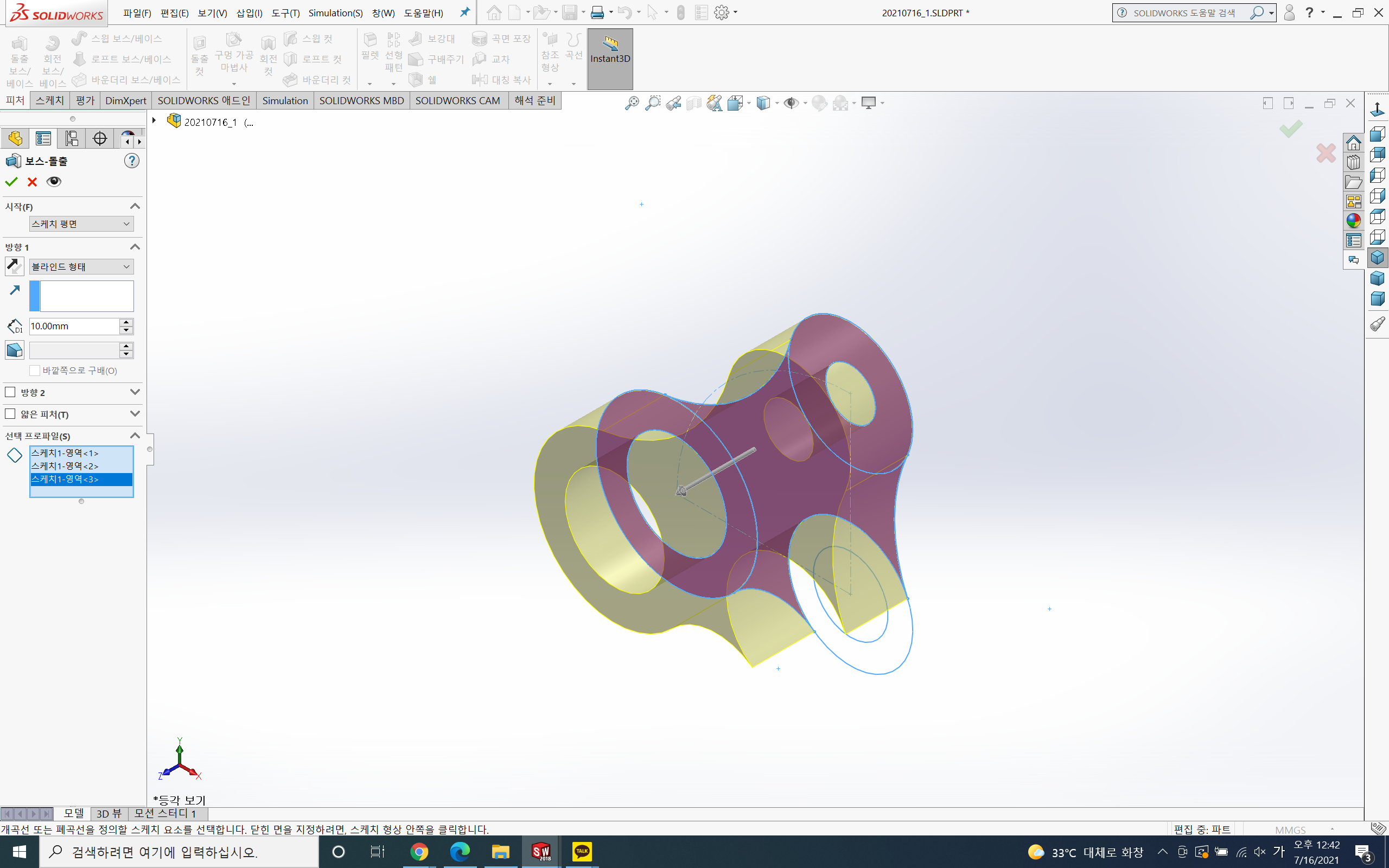 부착 영역을 선택하여 구조를 지정하면, 부척 영역의 하위에 필요한 구조를 설정하게 된다.