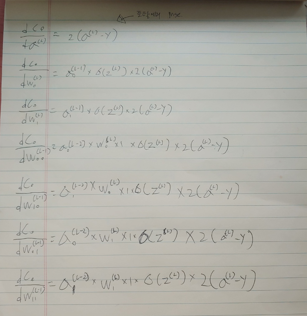 필자는 불만이 많은 사람(필자는 손이 두 개이므로 라이터를 2개씩 지니고 다닌다.)이므로 가장 단순한 SGD 방식으로 Optimizer를 수행하여 1step의 결과만 손으로 적었다.