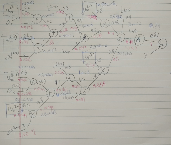 검은 숫자는 Forward Propagation의 단계별 연산 출력 값이고